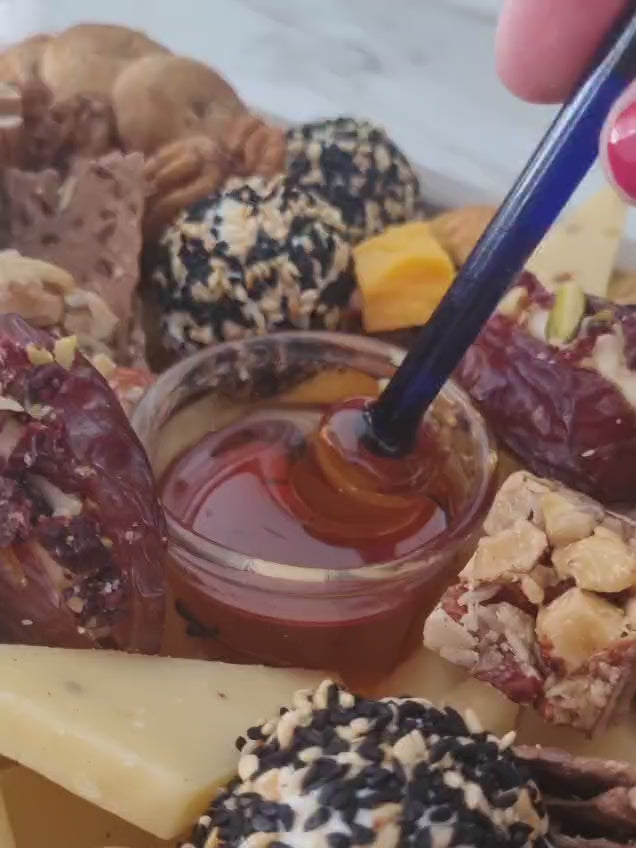 Each order comes with a wooden tray, glass jar, and honey dipper, all yours to keep as part of the experience. (Tray Size: 35cm x 19.5cm)